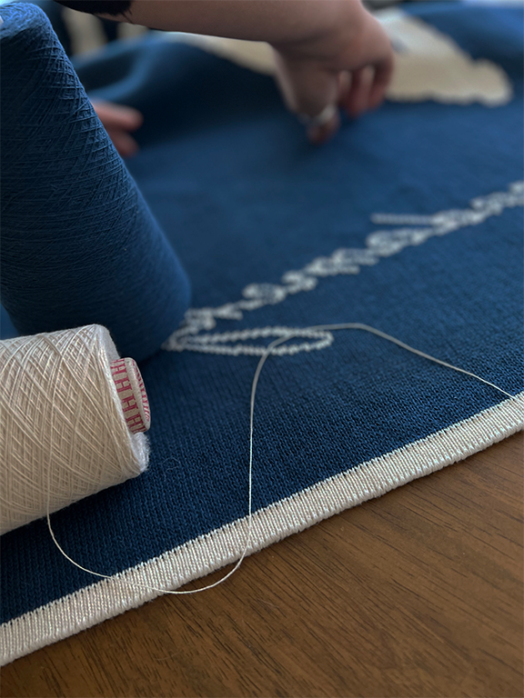 니트조직 특성상과 중간중간과 자수의 끝부분에